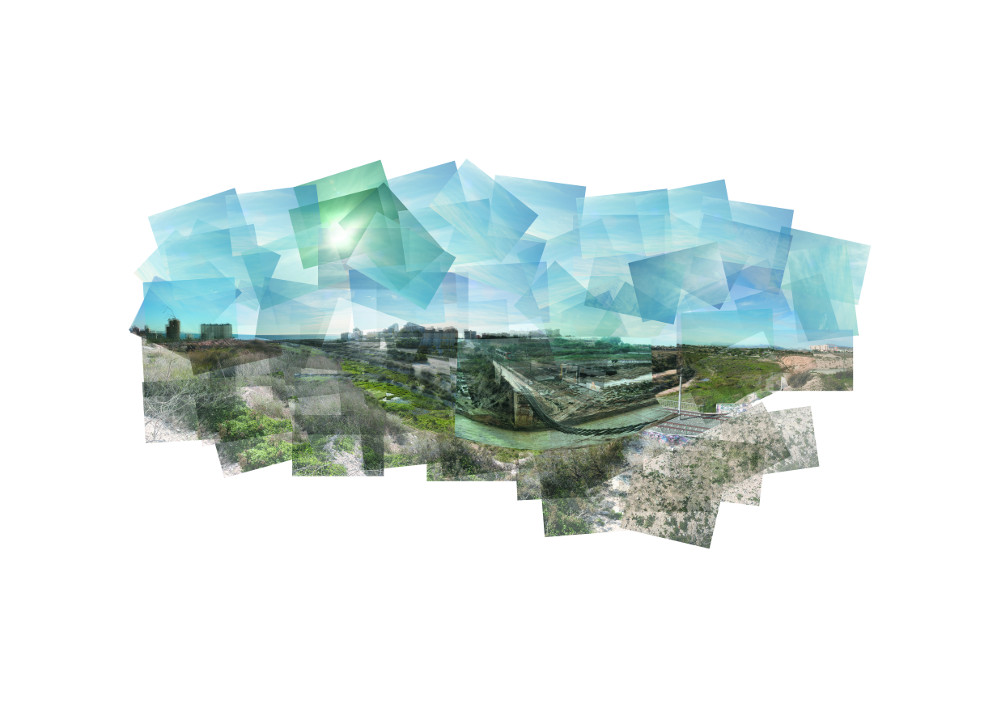 This series is the product of historical and archival research into the historical floods archive in the Municipal of El Campello, Spain. Using historical images of the land as it was in 1987 as the base of the image, Ribeiro layered new photographs taken from 2012 of that same land overtop to uncover both subtly and more obvious shifts in topography and nature.