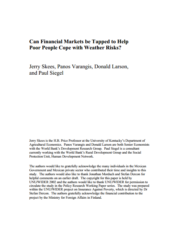Can Financial Markets be Tapped to Help Poor People Cope with Weather Risks?
