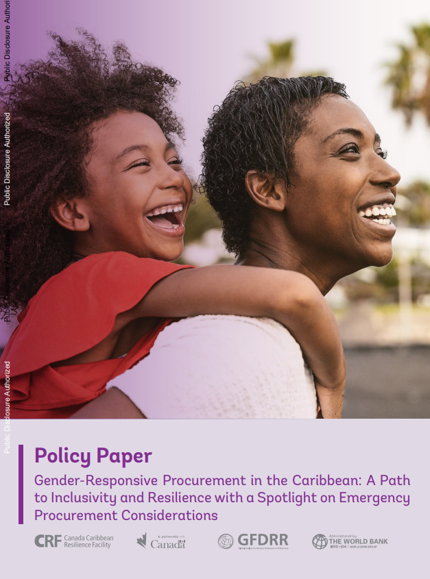 This policy paper aims to harness the power of public procurement to promote gender equality in nine countries of the Caribbean region: Antigua and Barbuda, Belize, Commonwealth of Dominica, Grenada, Guyana, Jamaica, St. Lucia, St. Vincent and the Grenadines and Suriname. The paper sheds light on how gender- responsive procurement can help fill existing gender gaps and how it can support more inclusive national rehabilitation programs. Targeted procurement actions are devised for tackling gender disparities in these countries. It is expected that the paper will serve as a primary reference for capacity-building activities.