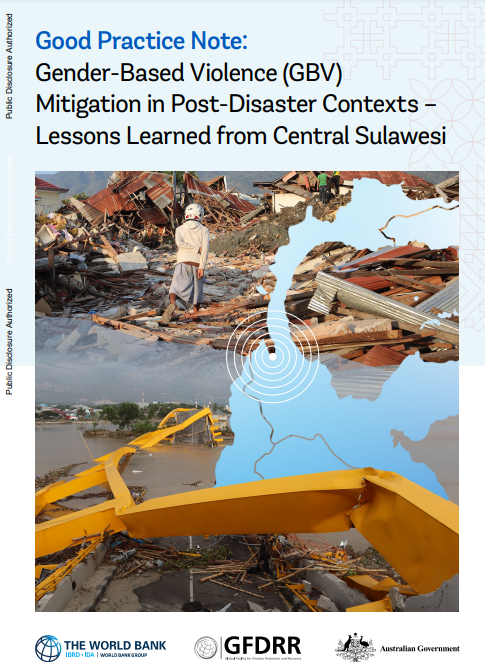 Women, girls, boys, and men face different levels of exposure and vulnerability to natural hazards, driven by gender dynamics and pre-existing inequalities in society. Women and girls are disproportionately affected by natural disasters across many outcomes, including loss of livelihoods, limited mobility, and lack of access to reproductive health services and sanitation facilities. In many post-disaster settings, gender-based violence (GBV) is also exacerbated. GBV traumatizes survivors and their families, and undermines the resilience of individuals and societies, making it harder to recover and rebuild. Failure to consider underlying gender inequalities, including GBV drivers and consequences, in the design and implementation of disaster risk management (DRM) programs is likely to render DRM support less effective. This note documents good practices to prevent, mitigate, and respond to GBV in post-disaster contexts, utilizing the World Bank-financed Central Sulawesi Rehabilitation and Reconstruction Project (CSRRP) as a case study.