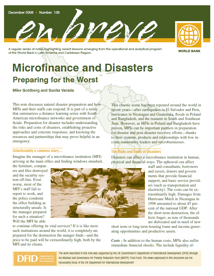 Microfinance and Disasters: Preparing for the Worst