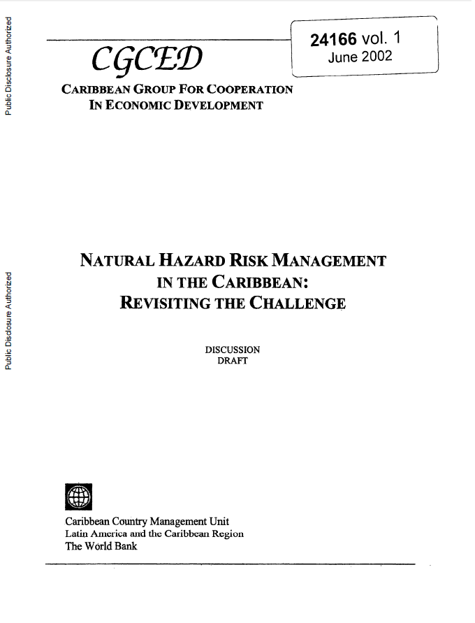 Natural Hazard Risk Management in the Caribbean (Vol 1): Revisiting the Challenge