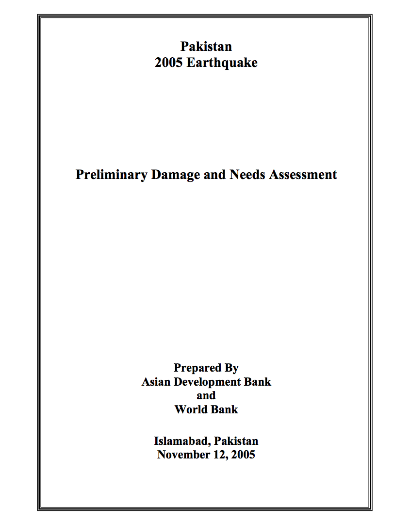 Pakistan 2005 Earthquake: Preliminary Damage and Needs Assessment