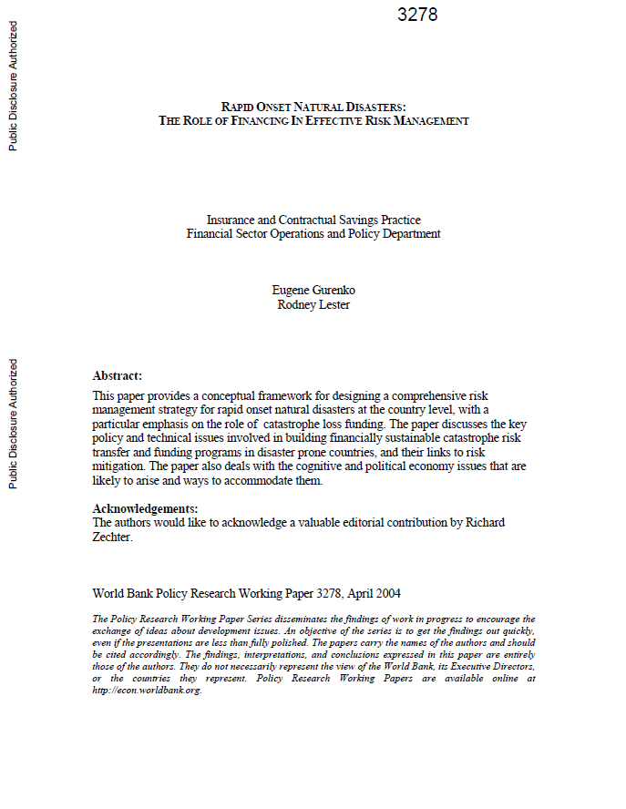 Rapid Onset Natural Disasters: The Role of Financing in Effective Risk Management
