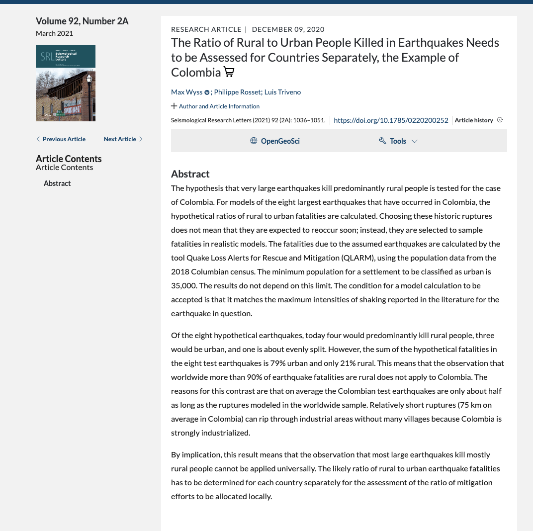 By implication, this result means that the observation that most large earthquakes kill mostly rural people cannot be applied universally. The likely ratio of rural to urban earthquake fatalities has to be determined for each country separately for the assessment of the ratio of mitigation efforts to be allocated locally.