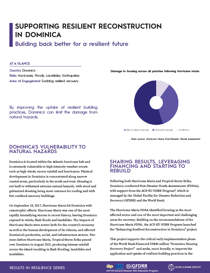 By improving the uptake of resilient building practices, Dominica can limit the damage from natural hazards.