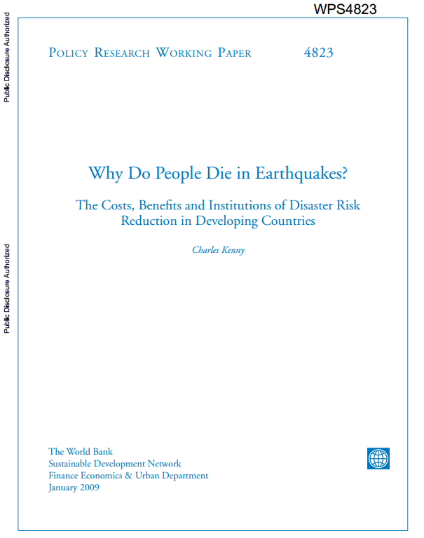 Why do people die in earthquakes? The costs, benefits and institutions of disaster risk reduction in developing countries