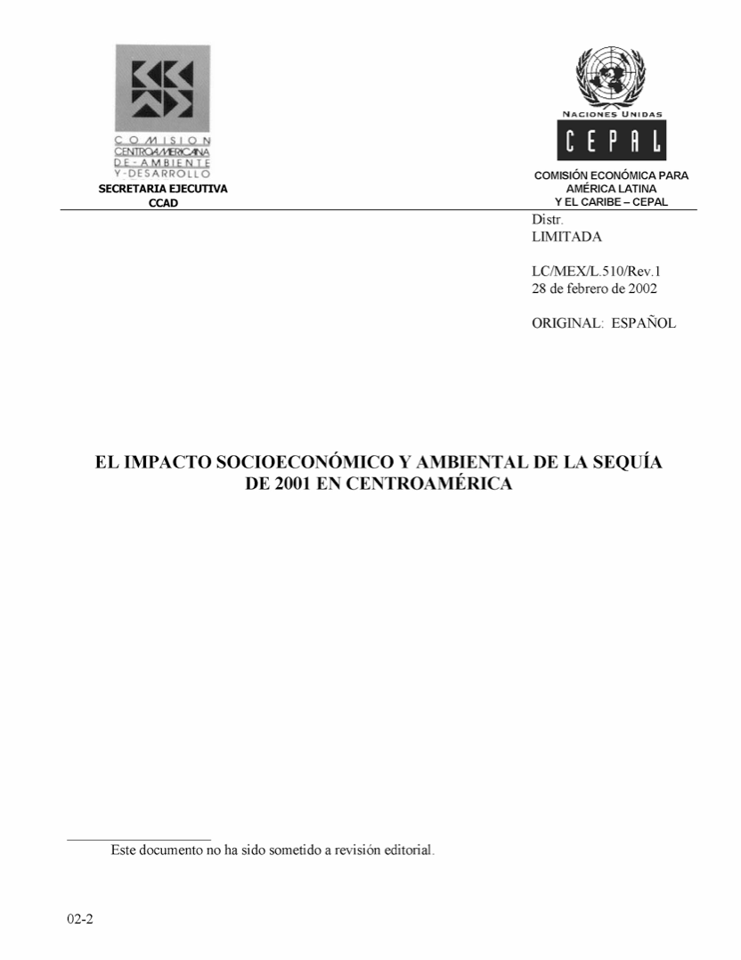 El Impacto Socioeconómico y Ambiental de la Sequía de 2001 en Centroamericana